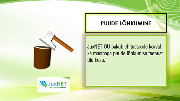 JuxNET OÜ meeskond pakub puude lõhkumise teenust üle kogu Eesti. Meie lõhkumise tunni hind on…